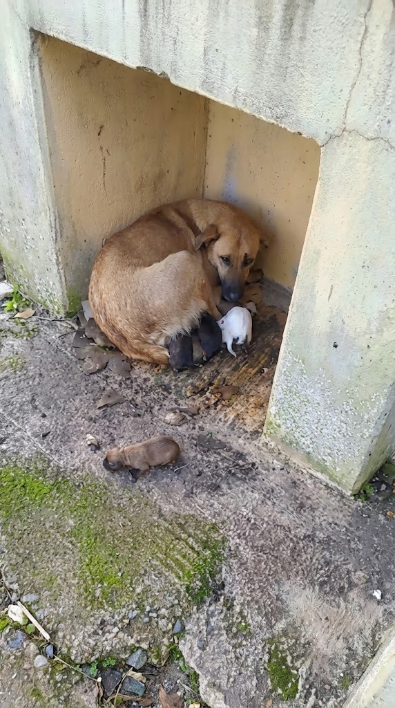 She stayed, guarding her puppies, allowing hope to come close—just a little.