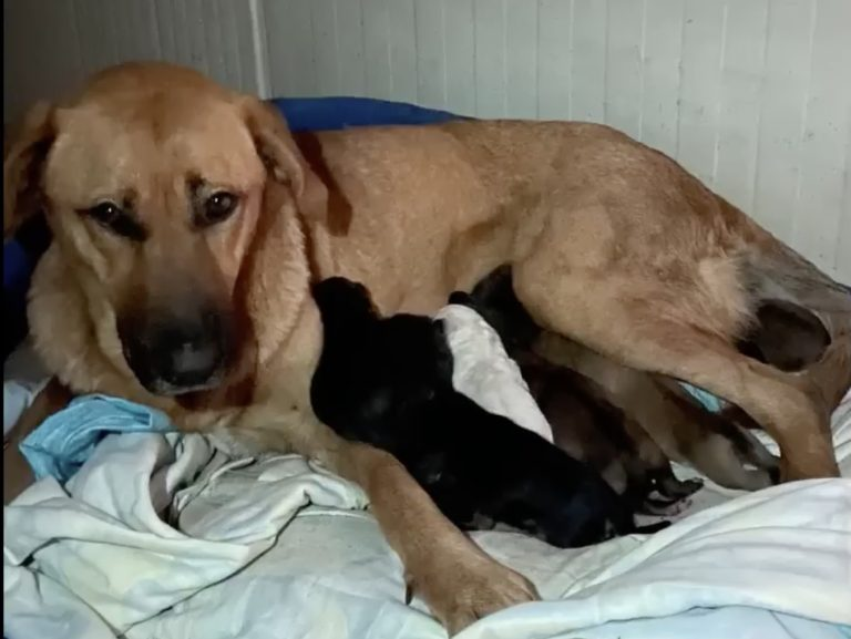 One by one, her puppies arrived—tiny, trembling lives in a world that offered them no kindness. Ingrid didn’t hesitate. She curled her fragile body around them, creating the only shelter she could.