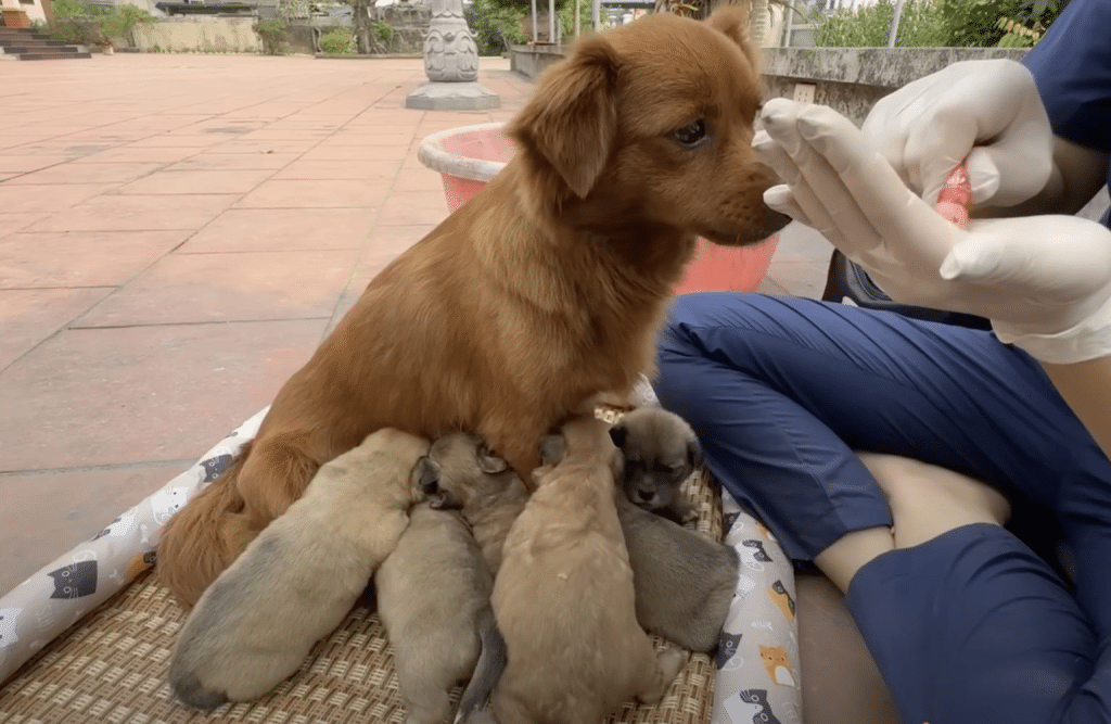 Only after her puppies were safe did she finally step forward.