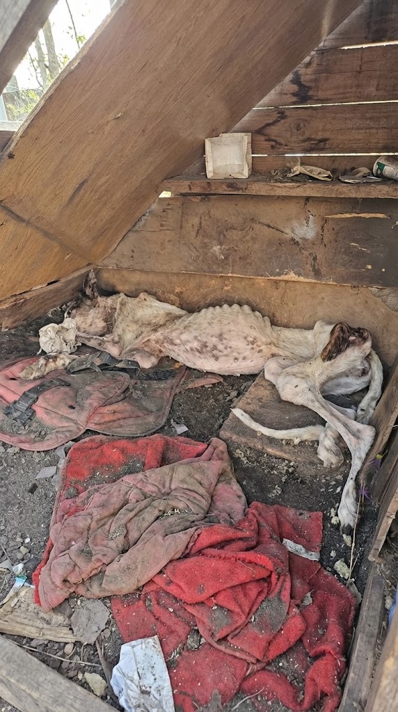 Her slender body rested against the cold earth, worn down by hunger, pain, and exhaustion. Her chest rose only slightly with each breath. Long legs that once carried her at breathtaking speed now seemed fragile and weak. One leg, twisted and broken, lay useless beneath her.