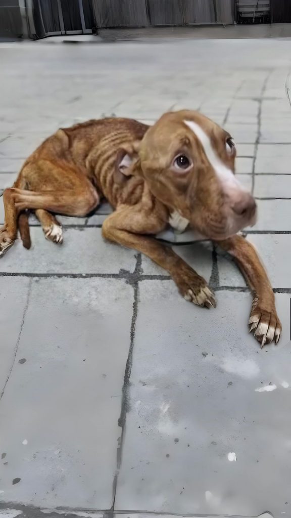 Her body told the story of long neglect. Hunger had reduced her size. Lack of water slowed every response. Her fur, once meant to protect, showed the wear of time without care. But it was her eyes that lingered most. They carried no anger. No sharp fear. Only uncertainty—and the quiet acceptance of someone who no longer expected kindness to arrive.