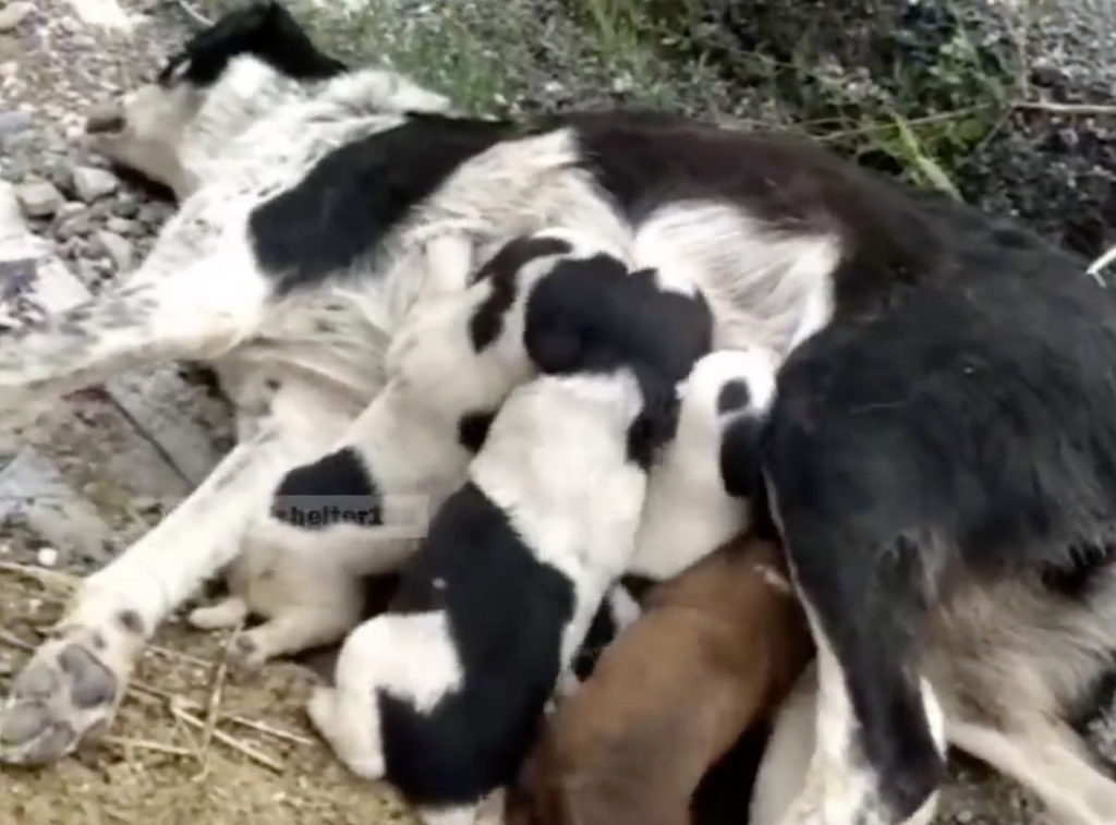 Along a rural roadside, they found another mother dog.