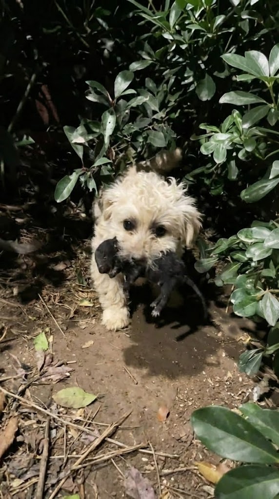 The white dog moved slowly, carefully, as if afraid to break the moment.