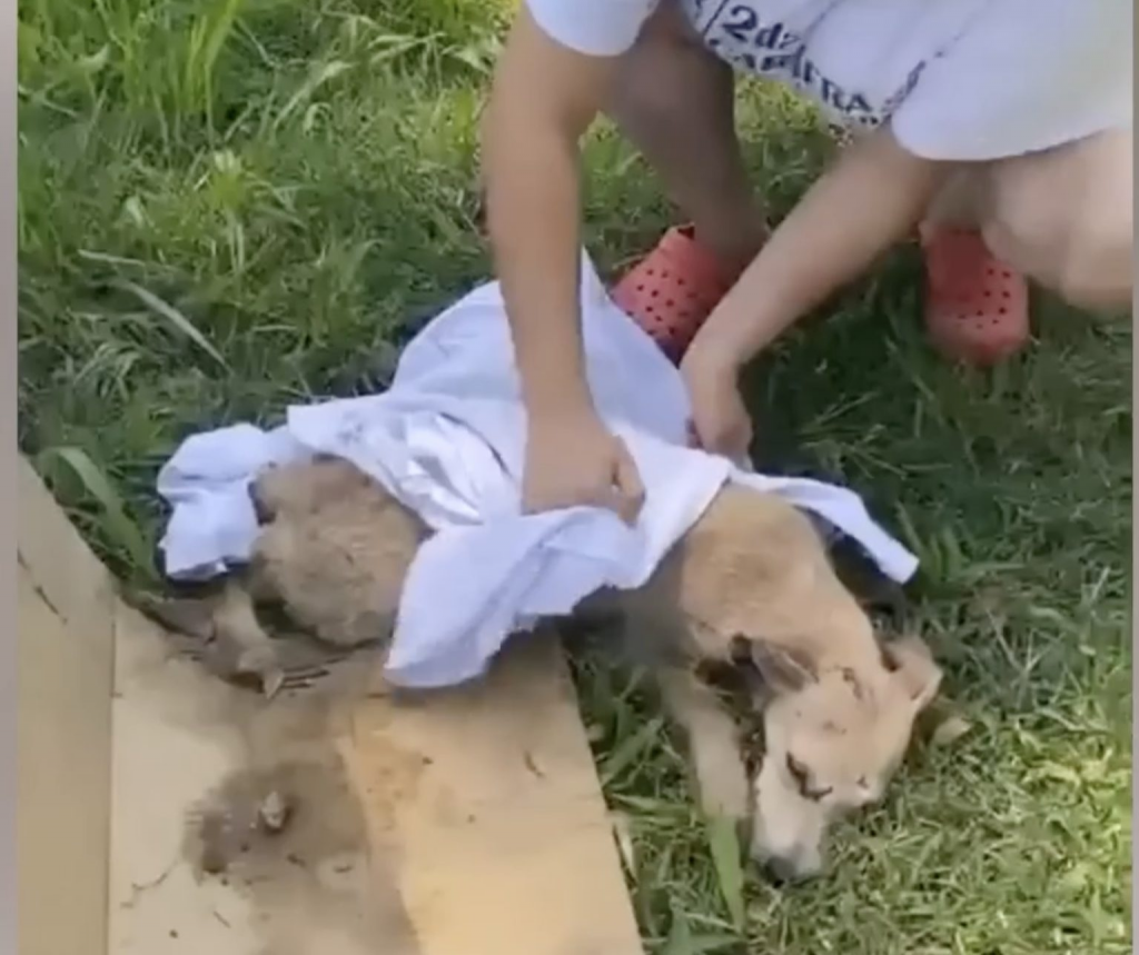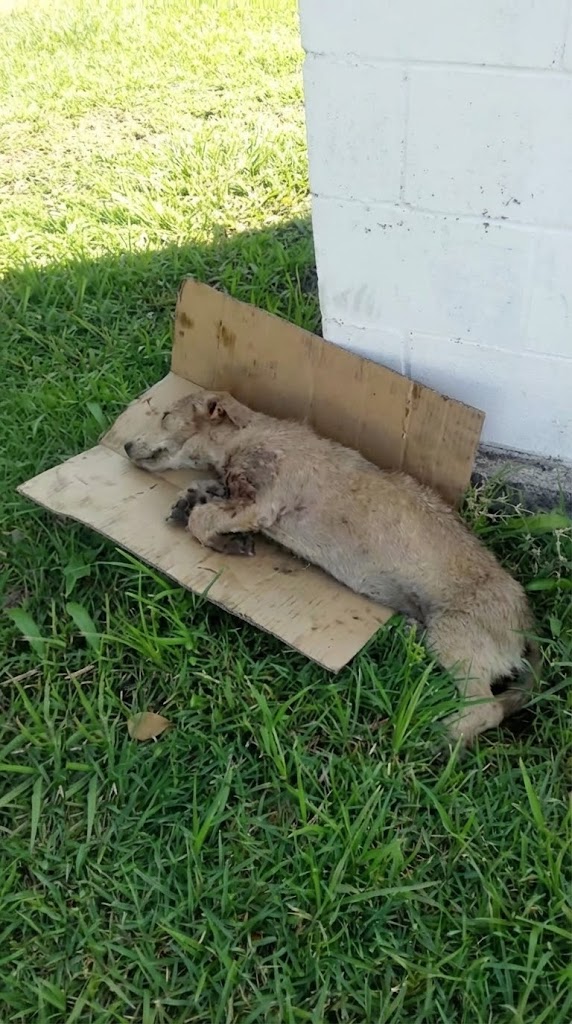 Inside, a small dog lay curled into herself, her body weak, her breathing shallow. She had already stopped crying. The effort was too much. All she could do was wait.