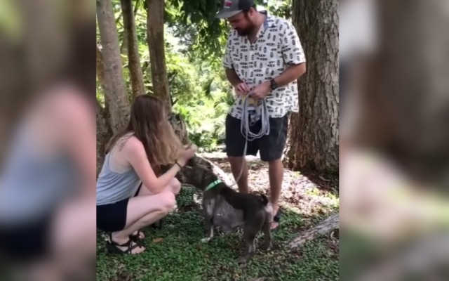 She walked toward them calmly, tail swaying. They knelt down, spoke softly, and let her set the pace.