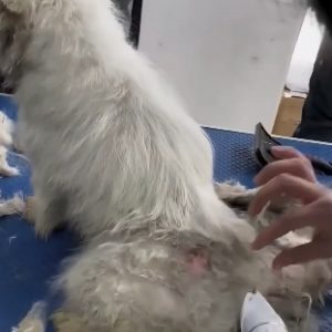 She was brought to a professional grooming center where her fur was carefully handled.