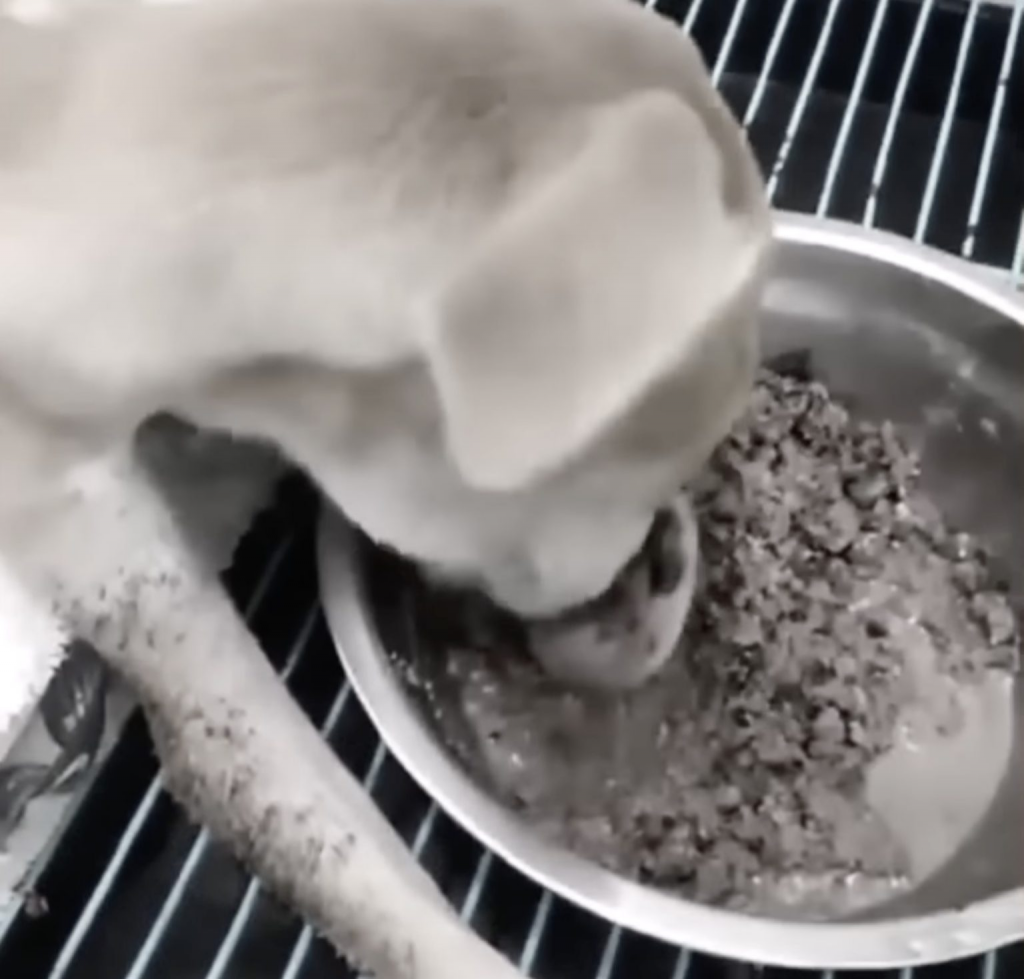 Soft, carefully prepared food was offered to protect her healing muzzle.