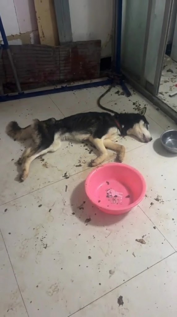 She was nothing like the strong, powerful dogs people imagine when they think of her breed. Her body was painfully thin. Her fur hung dull and lifeless. Her legs trembled as she struggled to lift her head.