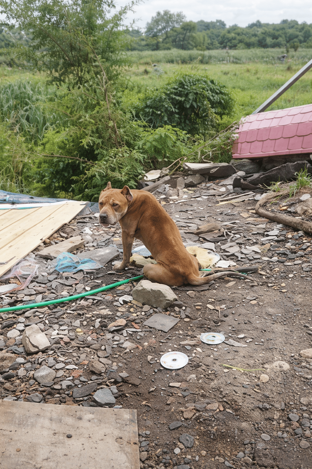 Six Pit Bulls were living in conditions no living creature should endure—chained tightly in place, surrounded by piles of garbage, mud, and their own waste. There was no clean water. No proper food. Just survival, hanging by a thread.