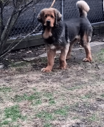 Sprout met a family who already had another Tibetan Mastiff named Wally. When the two dogs approached each other, it wasn’t tense or uncertain.