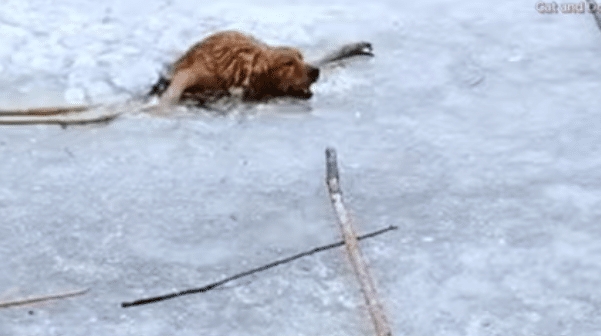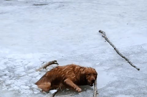 Meanwhile, the freezing water was draining the dog’s body heat fast. Hypothermia doesn’t wait.
