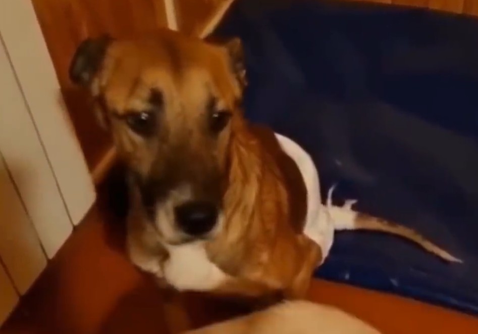 He watches it with confidence—like a dog who knows he is safe, cherished, and finally… home.