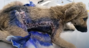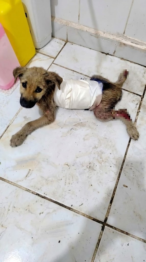 He was laid gently on the floor—small, fragile, and painfully still. There was no human companion by his side, no paperwork, no history. Only a young body bearing injuries far beyond what any puppy should endure. Time was not on his side. Every moment felt heavy, urgent, unforgiving.