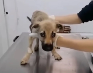 His skin was torn and inflamed in several areas, stripped raw by injury and neglect. A deep wound encircled his neck, demanding immediate and careful treatment. One of his legs was badly damaged—an open injury so painful that even the slightest movement caused his body to tense.