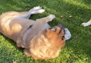 Today, Almira is unrecognizable from the dog found by those garages. She is now a strong, radiant 100-pound Alabai living in a foster home with six other dogs. They share a backyard, toys, sunlight, and something Almira had never known before: peace.
