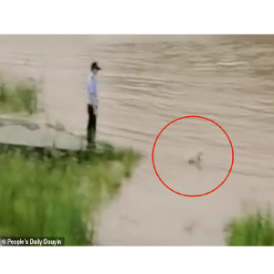 Without a sound, she tore herself free from the safety of the riverbank. Before anyone could react, she turned toward the raging water and leapt back in. There was no pause. No fear. Only instinct.