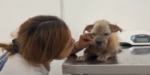 At the clinic, the truth about his condition slowly unfolded. This fragile dog—now named Alfie—was suffering from multiple serious issues: