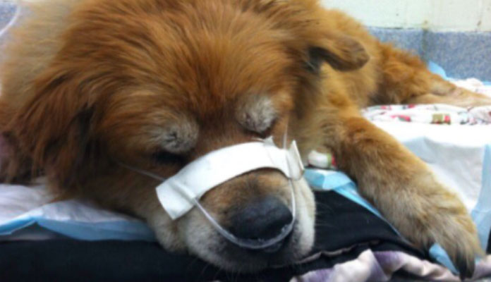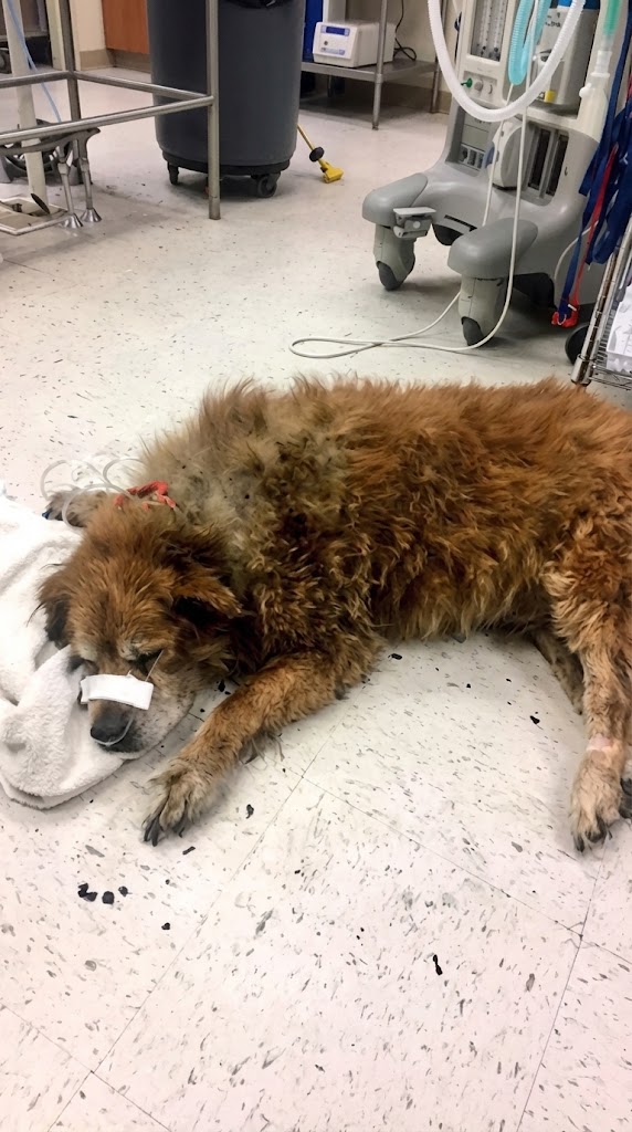 Andrea was in critical condition. Che, barely conscious, was placed on the grass outside. Someone fitted him with a small oxygen mask — designed just for dogs — as firefighters worked around him.