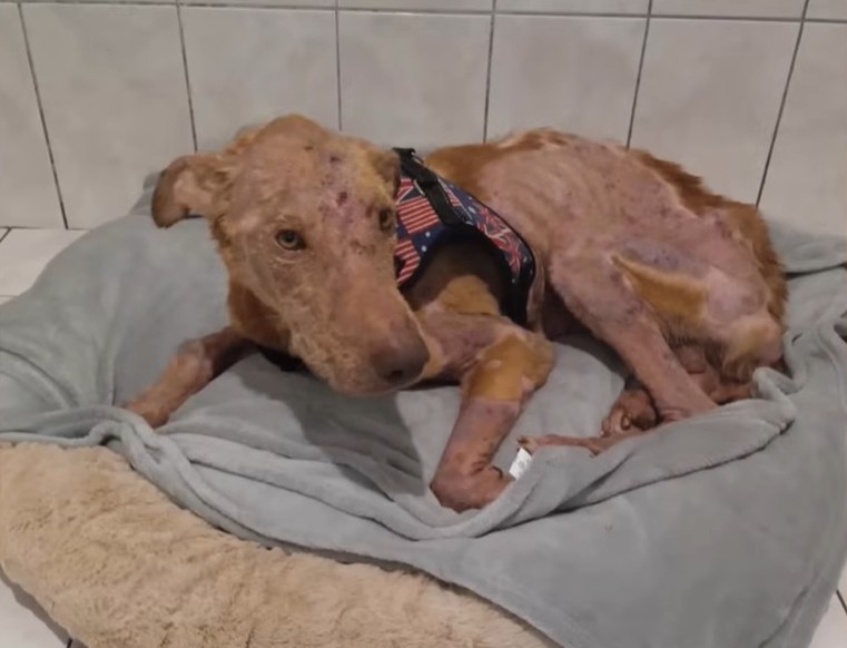 When rescuers first approached him, they were struck by something unsettling. Ragnar didn’t bark. He didn’t whine. He didn’t even try to escape. He simply stood there, motionless—his body thin to the point of transparency, his skin fragile like dried paper, and his fur missing in painful patches.