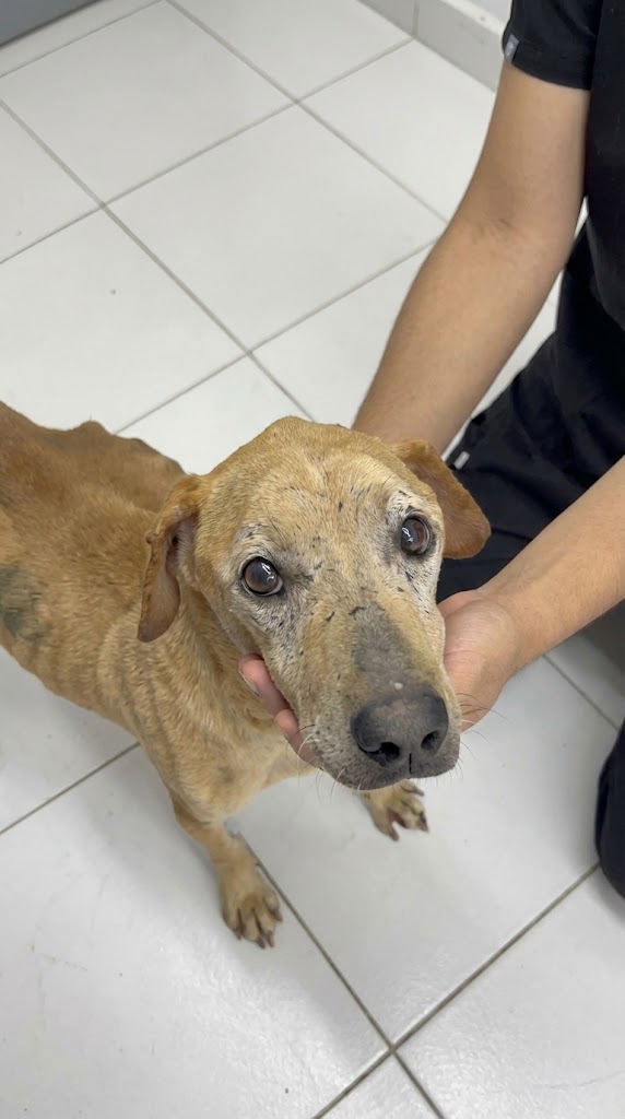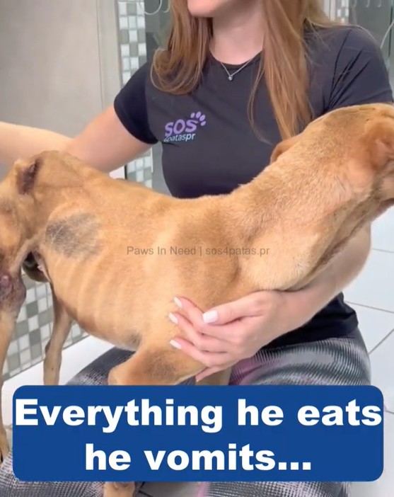 When volunteers from Instituto SOS 4 Patas lifted him off the pavement, they knew this wasn’t just a case of starvation.
