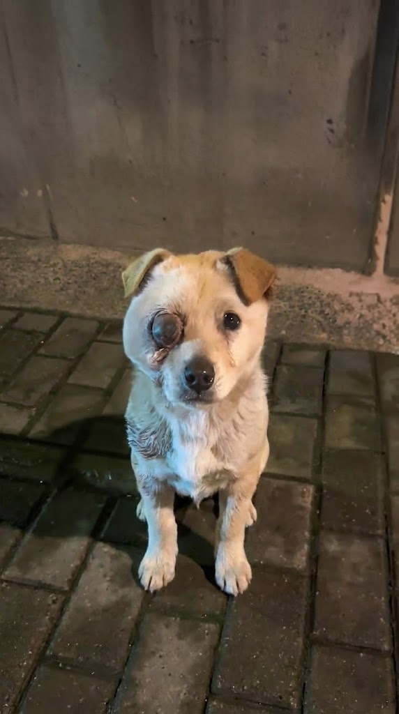 One of the dog’s eyes was horribly swollen, milky, and protruding unnaturally. It looked painful. Old. Forgotten. The kind of injury no living being should ever have to endure alone.