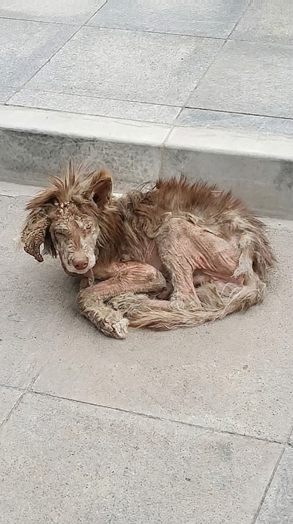 Almost all of his once-glorious fur had fallen out, eaten away by severe skin disease. What remained clung to him in sad, uneven patches. He didn’t look like a majestic dog anymore. He looked like a memory of one.