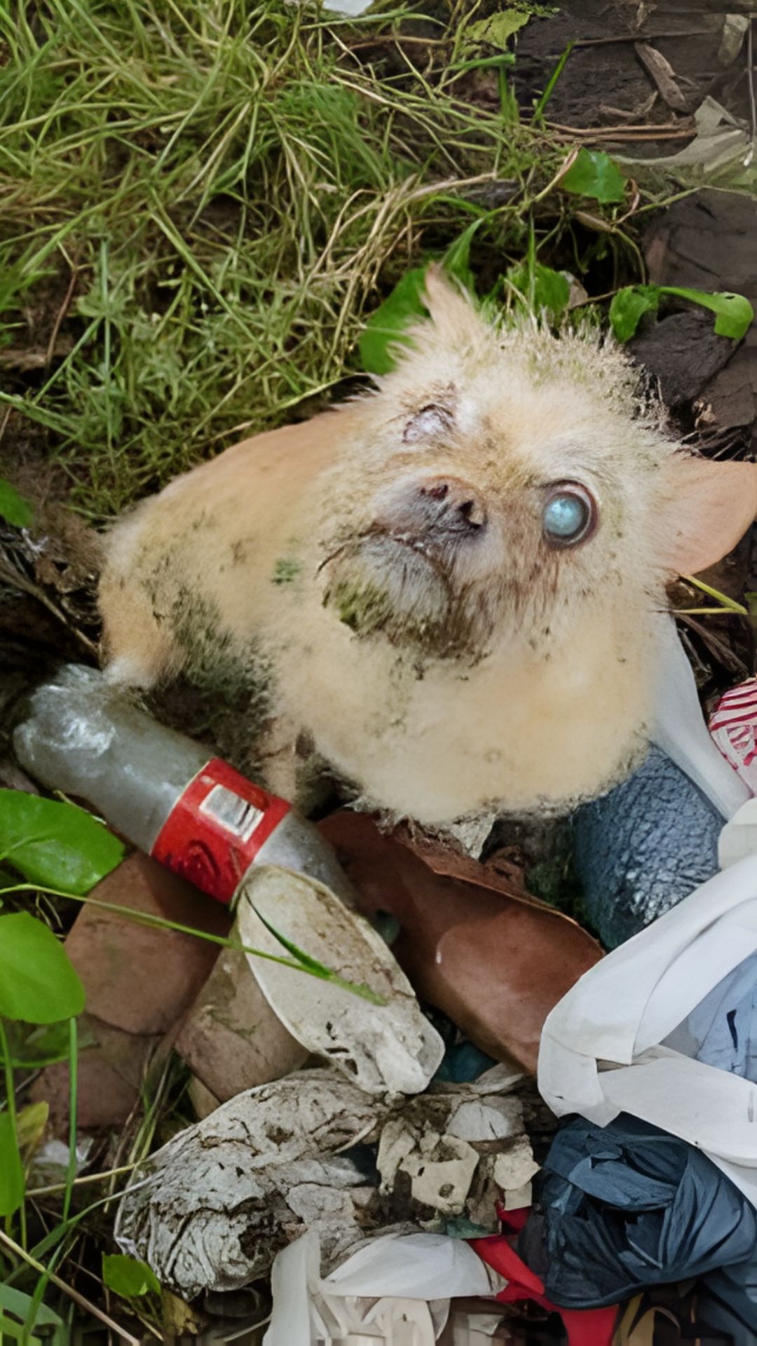 Scattered around them were torn bags and debris—silent proof that someone had abandoned her there. Alone, she would not have survived. She couldn’t see danger. She couldn’t search for food. She couldn’t escape.