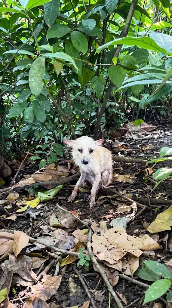 While walking rescue dogs through a quiet stretch of forest in Bali, Sabine Kaufmann noticed a small shape trembling in the mud. At first glance, it barely looked alive. A tiny, hairless dog crouched low to the ground, shaking from cold and terror. Her back curved unnaturally, her body too weak to lift itself.