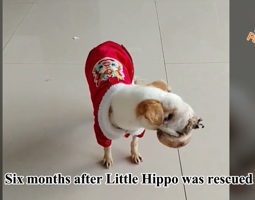 The volunteers spoiled him with meatballs, dried treats, and every snack he could ever want. He even wore new clothes for the New Year, stumbling happily toward his rescuers with a spirit that refused to match his body.