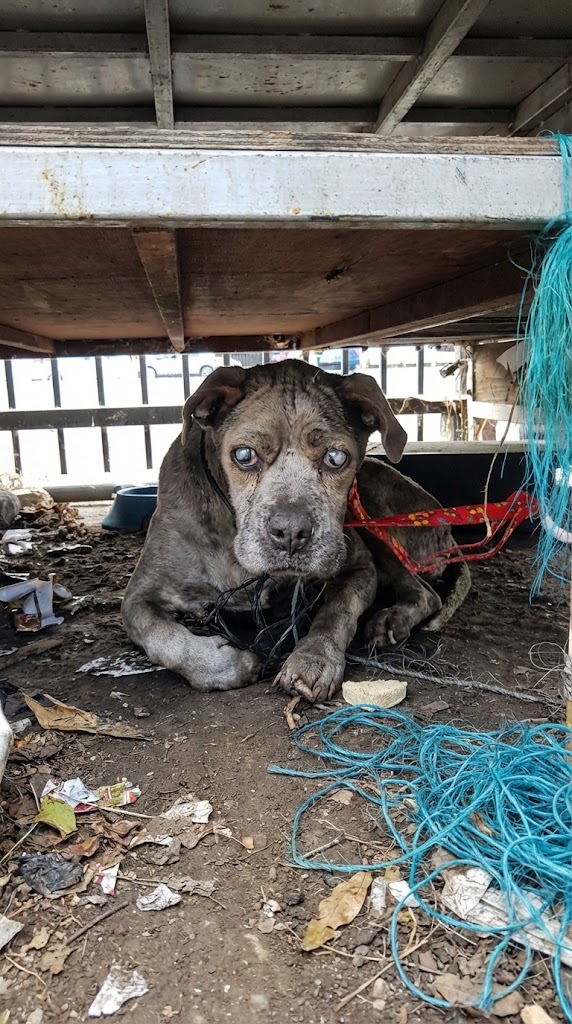 When a junkyard worker noticed him, her heart dropped. This wasn’t just a lost dog. This was a dog who had given up. He was blind, severely dehydrated, and his body carried the scars of long-term neglect.