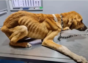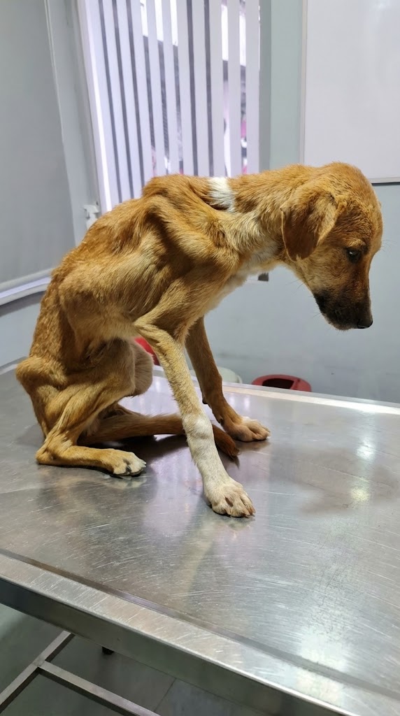 He was heartbreakingly thin. Every bone was visible, every step uncertain. Even in the dim streetlight, it was impossible to ignore the story his body was telling: days of hunger, nights of fear, and a life spent searching for scraps of hope.