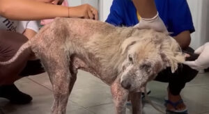 At the clinic, the truth became even more painful. His fur was matted, hiding layers of skin disease, open sores, and deep scratches. He was dangerously underweight. Weak. Exhausted.