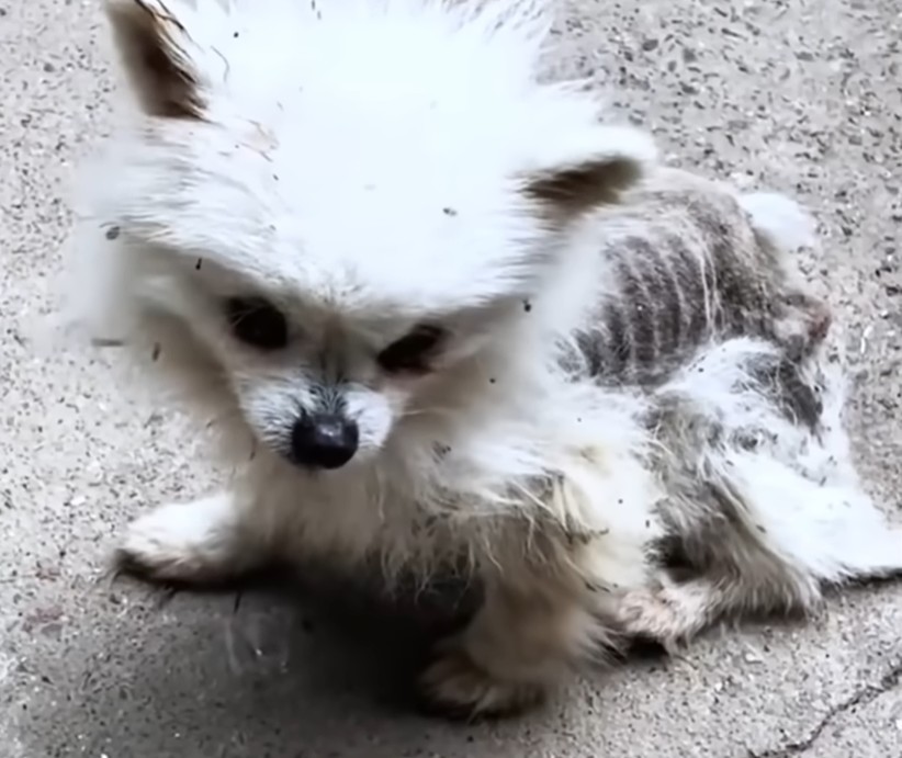 There, he became a shadow. His once-clean fur turned into a mess of sores and scabs. His body grew thinner by the day, until his ribs were no longer hidden — they were a painful outline beneath his skin.