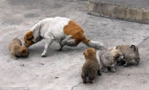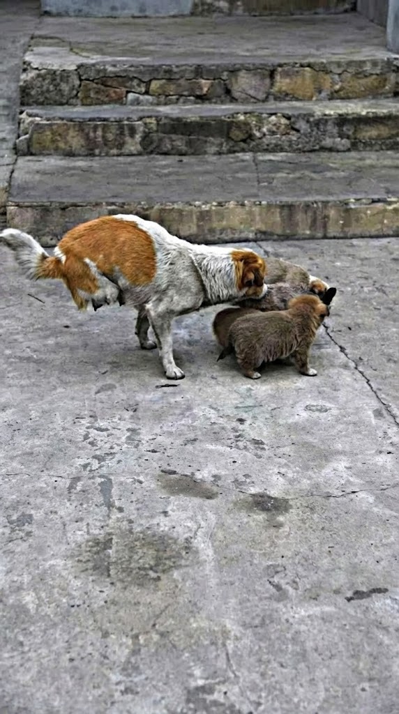 No announcement preceded the moment. There were no headlines. Just a stunned realization spreading from person to person: a two-legged stray had given birth to a litter of healthy puppies.