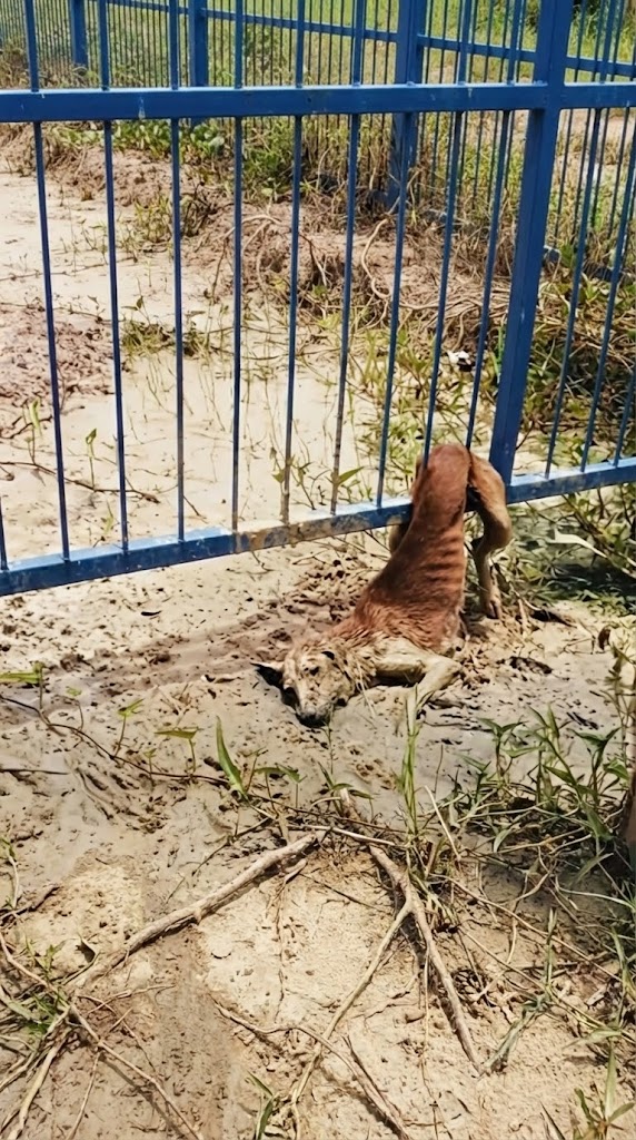 She had been wandering for hours, guided by hunger and instinct. Maybe she caught the faint scent of food on the wind. Maybe she was only looking for shade. Whatever drew her forward, it led her to a narrow gap beneath a rusted fence. Small and hopeful, she slipped inside without hesitation.