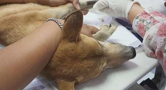 They approached slowly, carefully. The puppy’s belly was bruised and tender, and she flinched as people gathered around. Yet she didn’t bite or growl. As hands gently supported her weight, she stayed still—almost as if she understood that these strangers were trying to help, not harm.