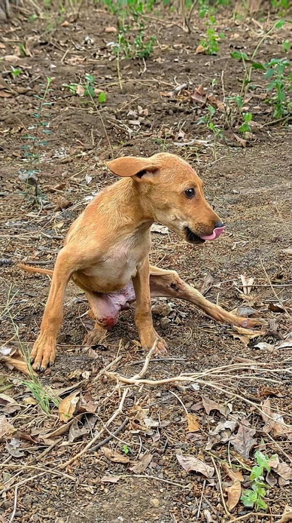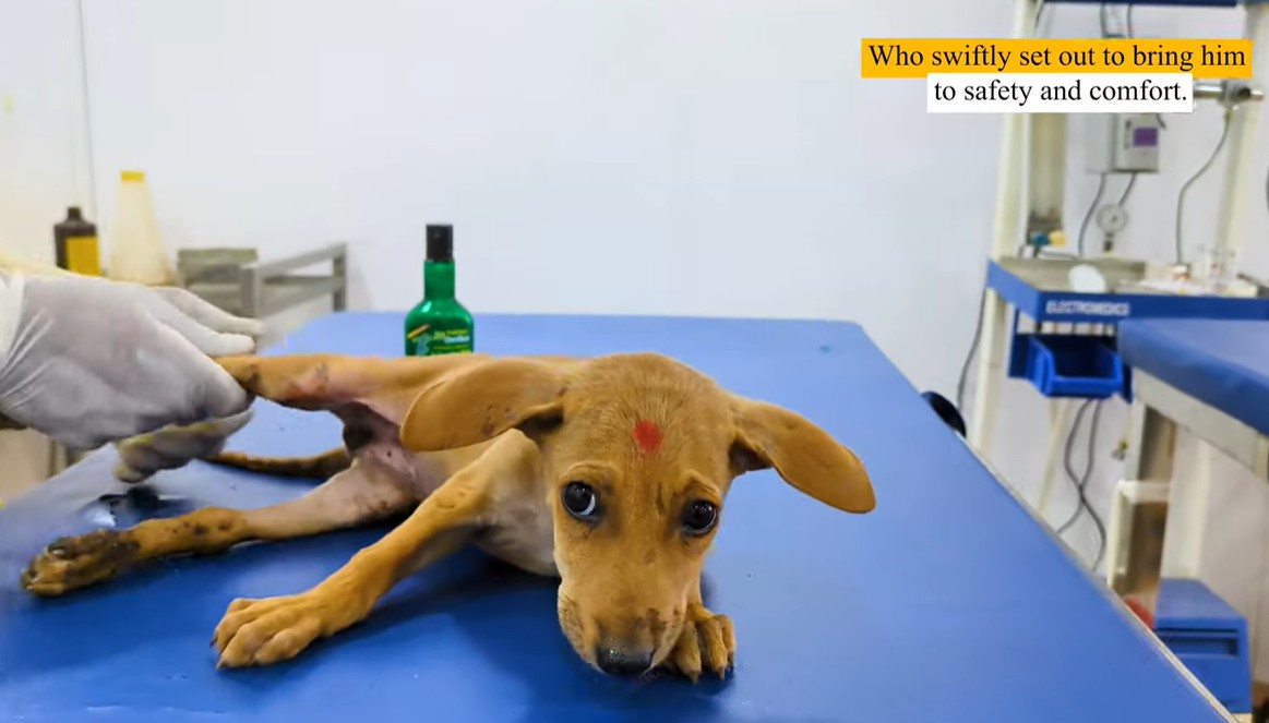 He was discovered on the edge of a busy road in India, curled into himself like he was trying to disappear. Dust clung to his fur. His body trembled. And his back leg… didn’t move the way it should.