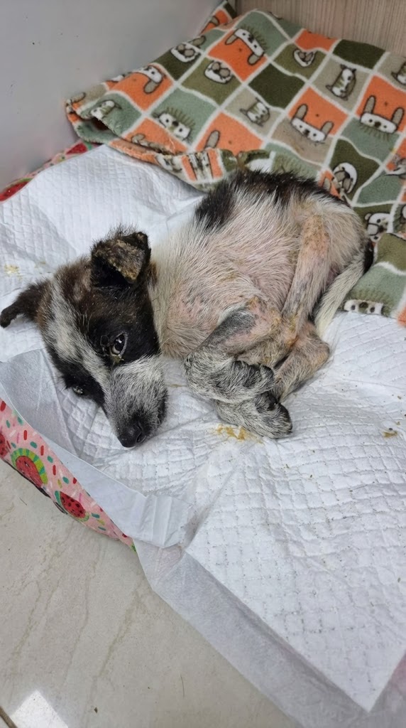 Living on the streets had taken a brutal toll on his tiny body. Severe mange had eaten away at his skin, leaving it raw, inflamed, and bleeding. He was battling serious infections. Worse still, he was dangerously anemic—so weak that immediate surgery could have killed him.