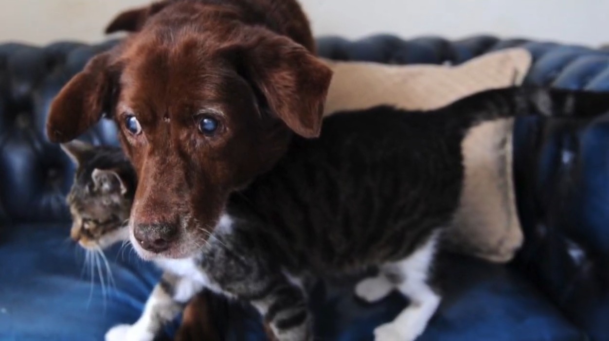 VIDEO: Watch the Moment a “Bully” Cat Becomes a Seeing-Eye Guide for a Blind Dog