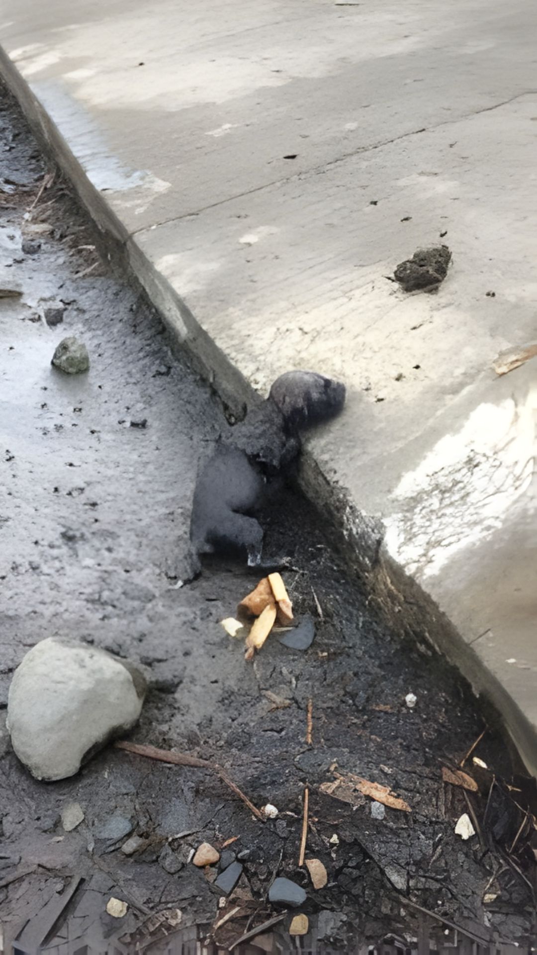 Curled against the cold pavement was a puppy so small it fit in the palm of her hand. Its eyes were still closed, its body trembling. Desperately, the little one licked the wet ground, trying to drink the rain—confusing the falling drops for its mother’s milk.