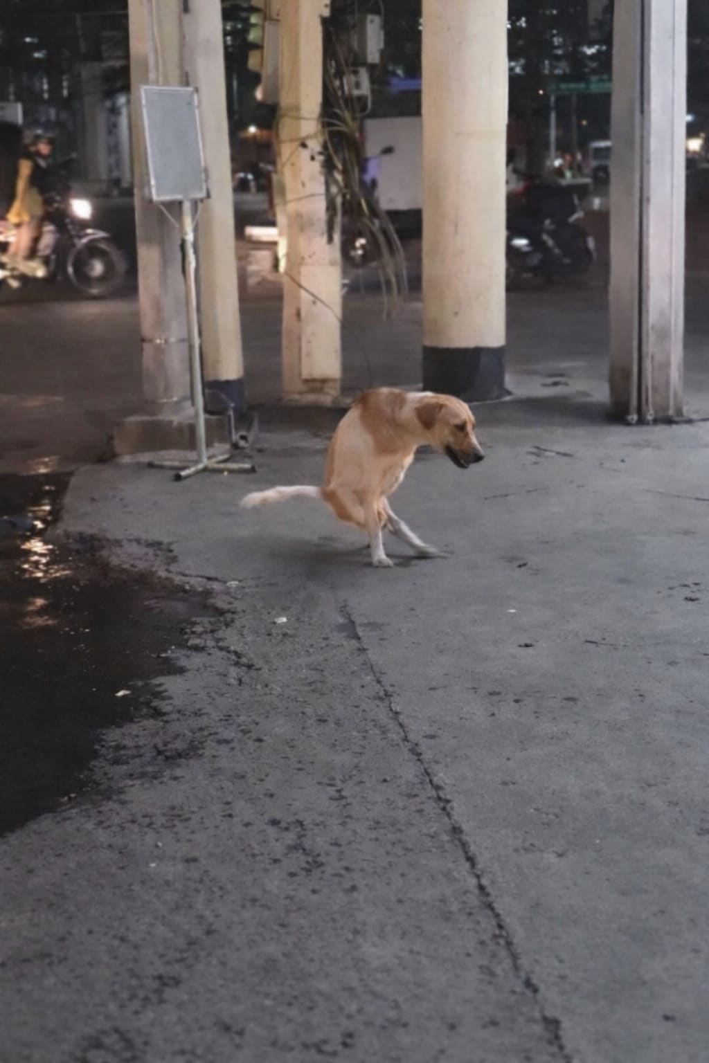 A short video of the fragile dog began circulating online. In the clip, the skinny stray struggled to move across the pavement, dragging himself forward as his back legs twisted awkwardly behind him. His spine appeared severely deformed, and every step looked exhausting.
