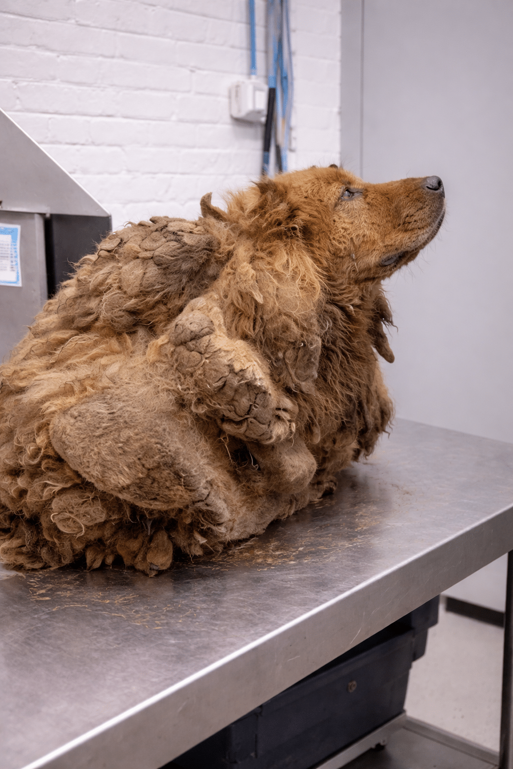 His entire body was buried beneath layers of filthy, tangled fur—so dense and heavy that even the simplest movement became a struggle. Breathing wasn’t easy. Walking wasn’t easy. Living wasn’t easy.