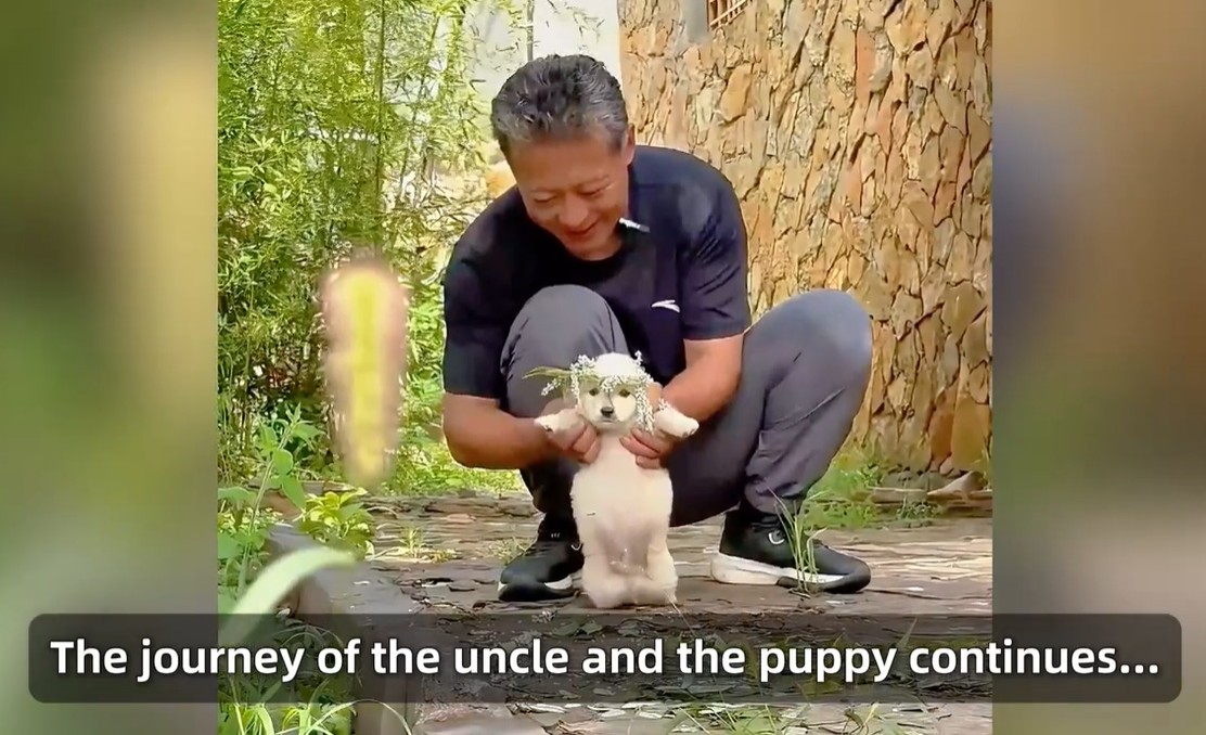 Today, the puppy follows the uncle everywhere. He stays close like a shadow, never wanting to be left behind again.
