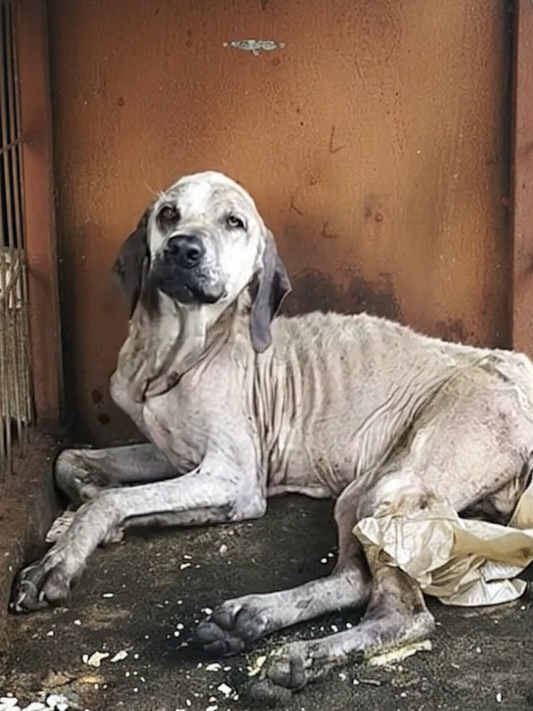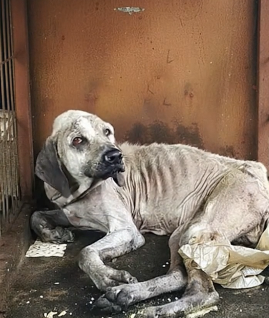When someone finally stopped and truly looked, the scene was impossible to forget. Behind rusted bars and stale air stood a living example of what happens when suffering is silent. His body told a long story—bones visible beneath a coat dulled by time and neglect. This wasn’t the aftermath of one terrible moment. It was the result of days, weeks, perhaps months of being overlooked.