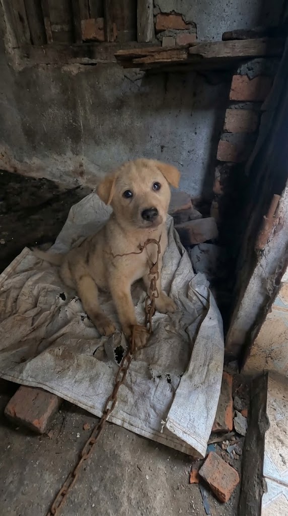 In that forgotten place lived a dog no one seemed to remember. Once, he might have known laughter, gentle voices, or the comfort of a warm corner by a fire. But those memories had been swallowed by years of isolation. All that remained was the cold embrace of a heavy iron chain and the silence that pressed down on him day after day.