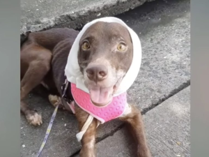 As a puppy, someone had placed a collar around her neck and never bothered to adjust it. While her body grew, the collar did not. Slowly, relentlessly, it tightened. The plastic and fabric dug into her skin, becoming a cruel, unyielding trap.