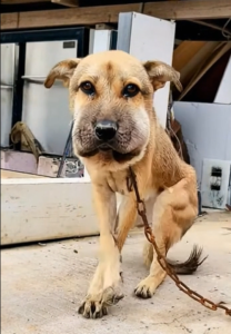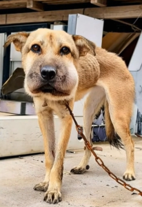 Tied to a corroded chain outside a harsh, unforgiving home, he lived in a tiny, rigid square of existence. Concrete under his paws, sun and wind unfiltered, Rudy learned the art of endurance. Movement was measured, energy conserved. He stopped hoping for attention—he had long realized the world wasn’t watching.