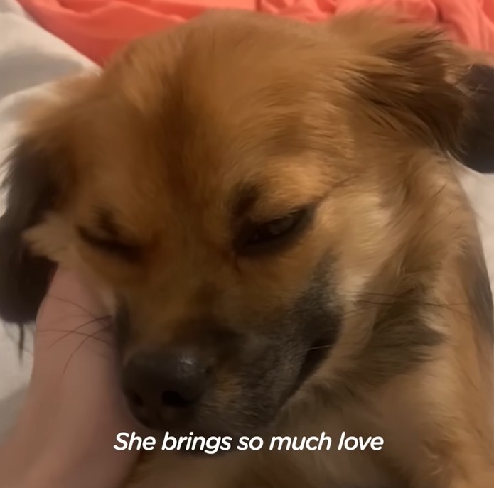 Because of her unique body—short torso and long back legs—her family lovingly nicknamed her their “Rotisserie Chicken” and sometimes their little “Frog Baby.”