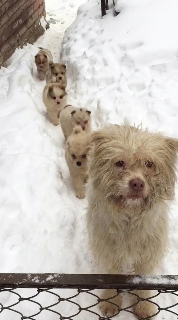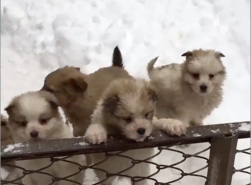 VIDEO: Hungry Puppies Line Up in the Snow Waiting for Their Mother to Beg for Food