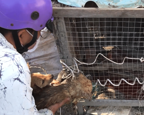 The footage captures the turning point: the chain being removed, the cage door opening, and two small bodies hesitating before stepping into open space for the first time.